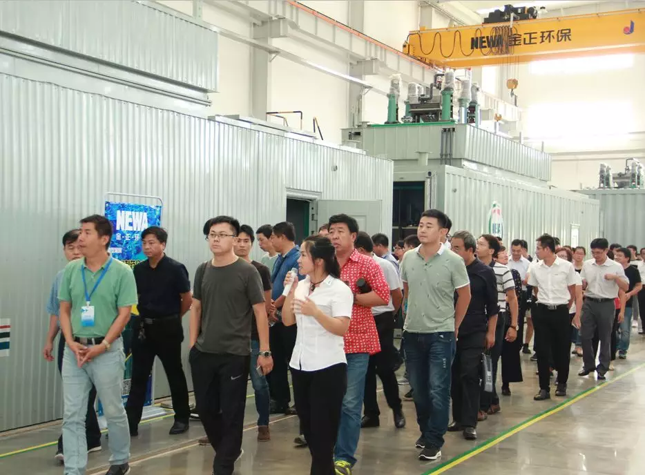 會議報(bào)告與對話環(huán)節(jié)結(jié)束后,100余人與會代表蒞臨煙臺金正環(huán)保產(chǎn)業(yè)園參觀考察。