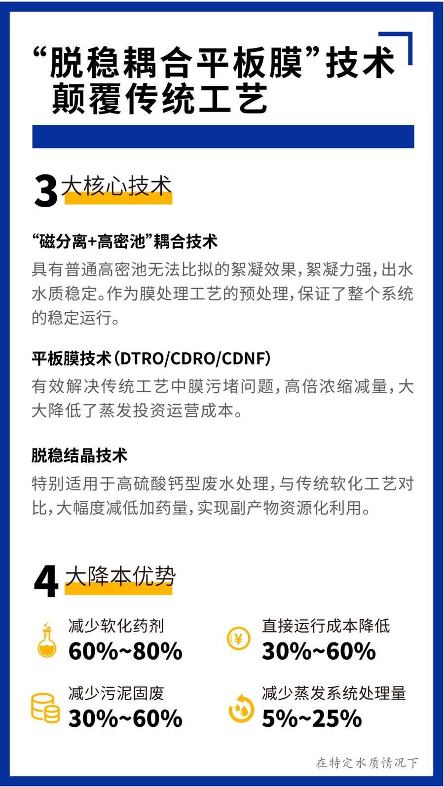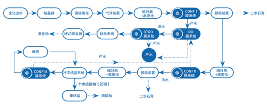 在某些工況下,采用“脫穩(wěn)耦合平板膜”技術(shù),減少加藥量,以更短的流程實(shí)現(xiàn)化工廢水的零排放,處理成本降低20%~30%。